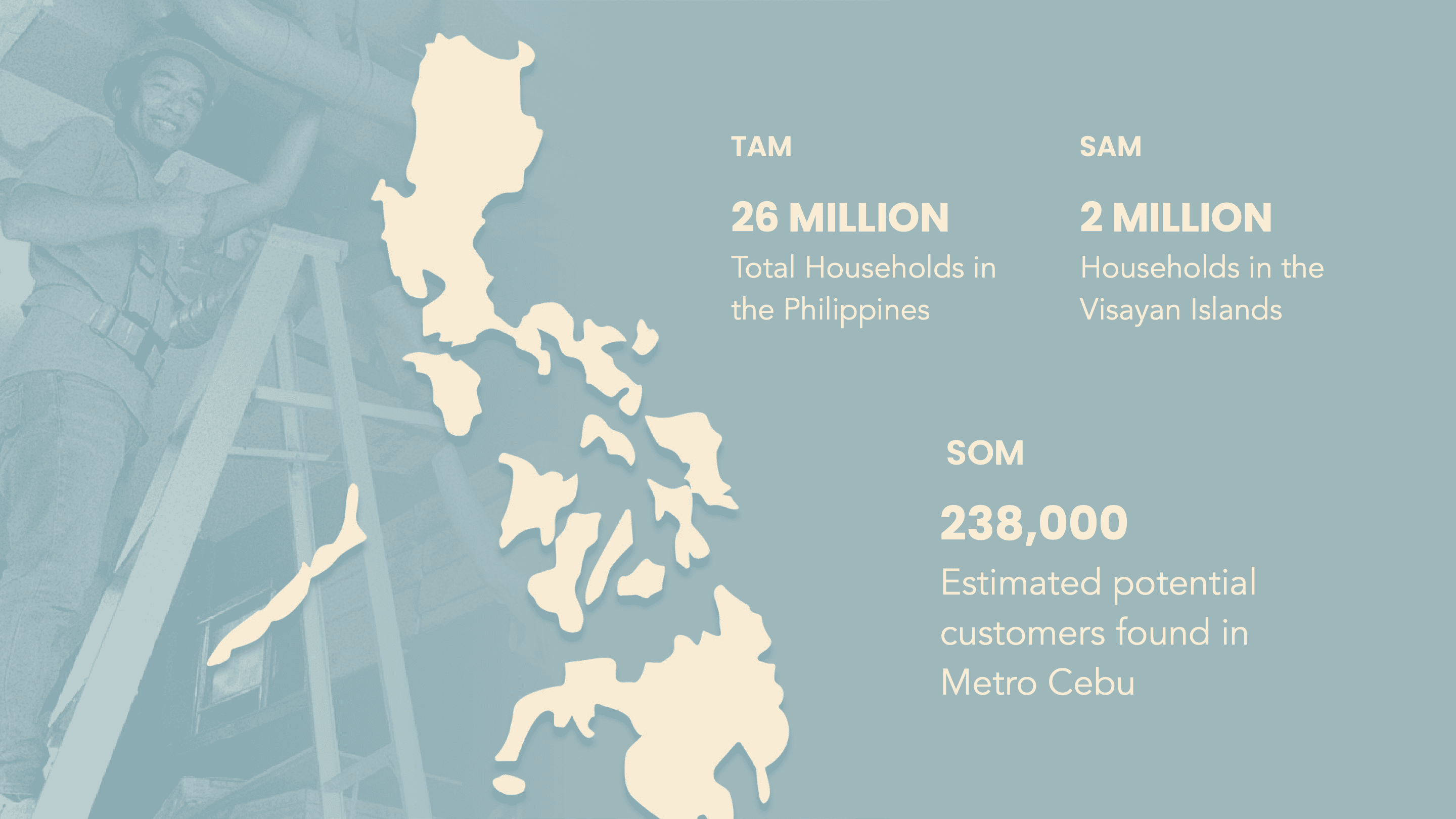 We estimated market potential using TAM–SAM–SOM segmentation and identified our beachhead market through the Bowling Alley technique.